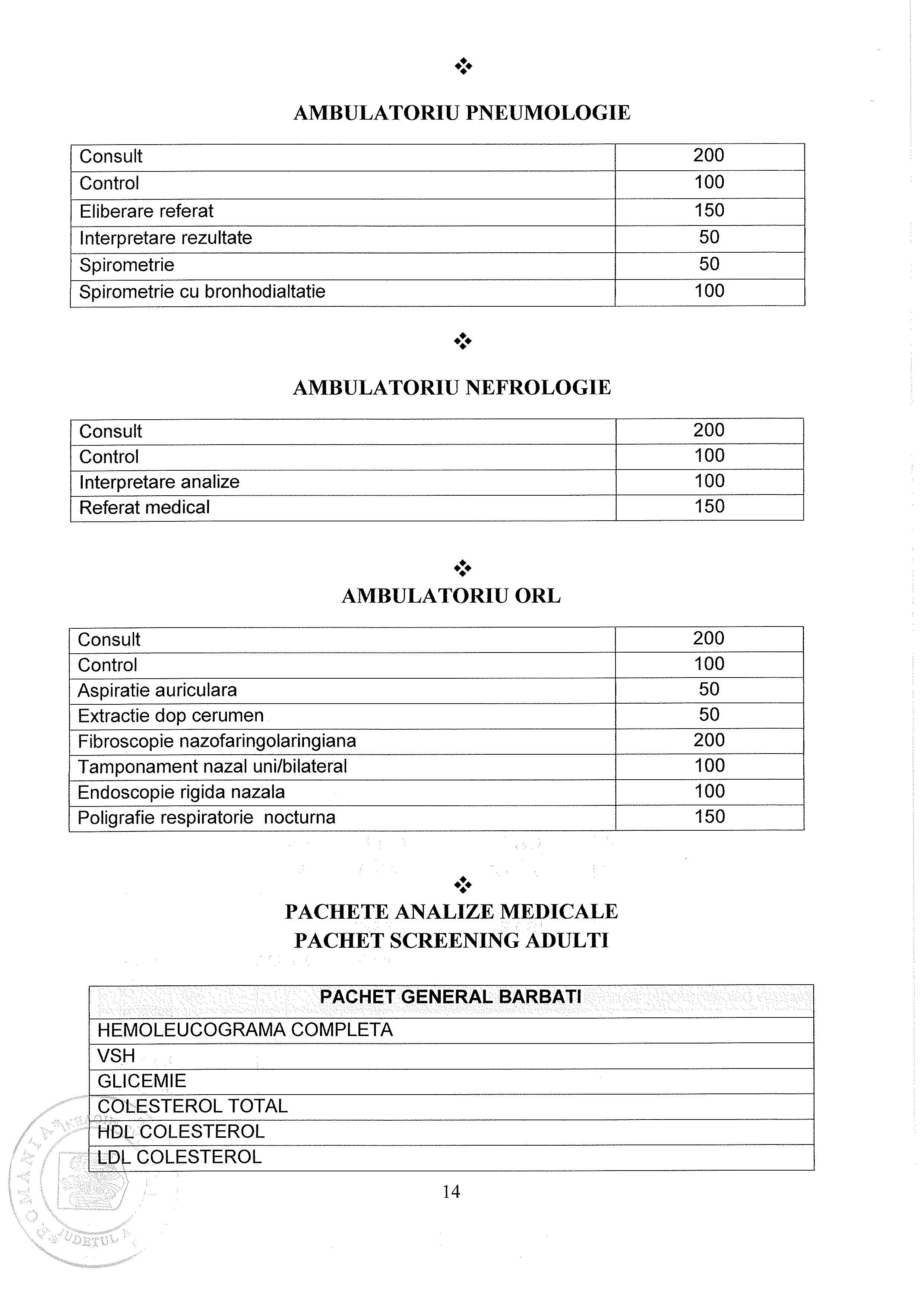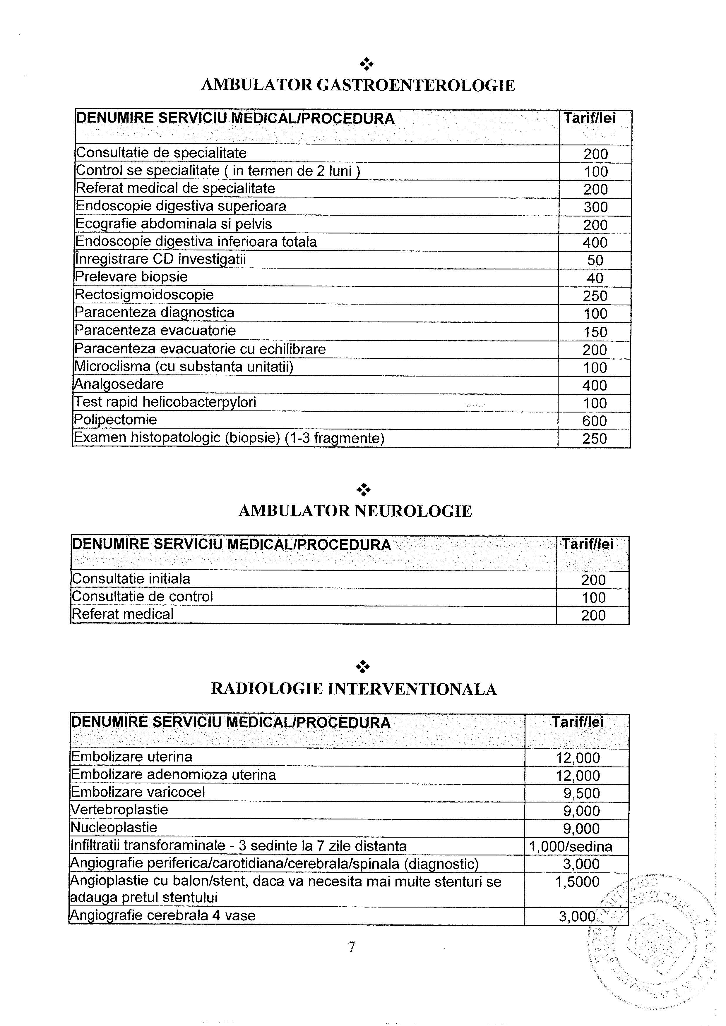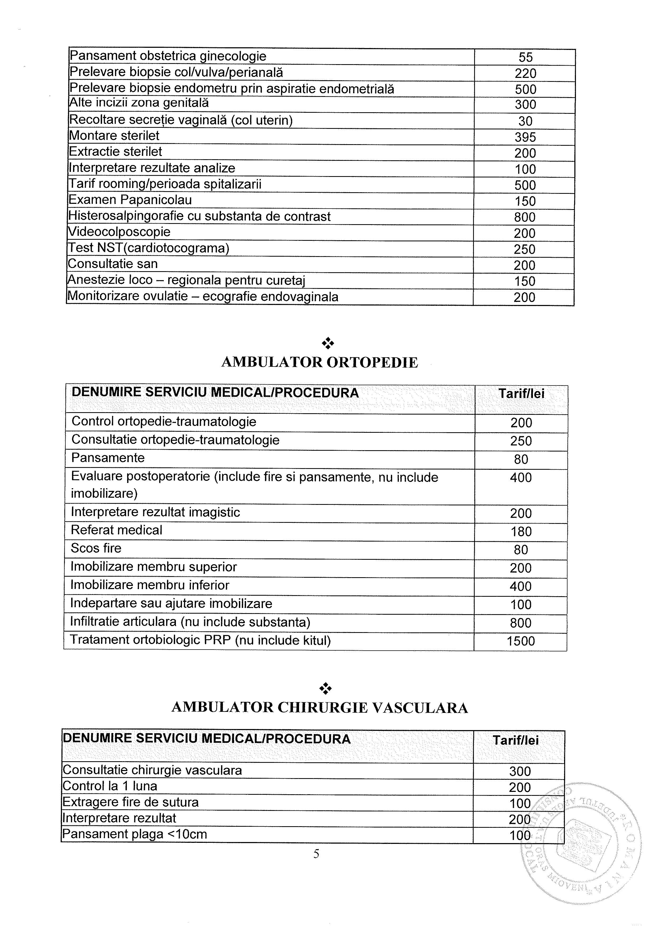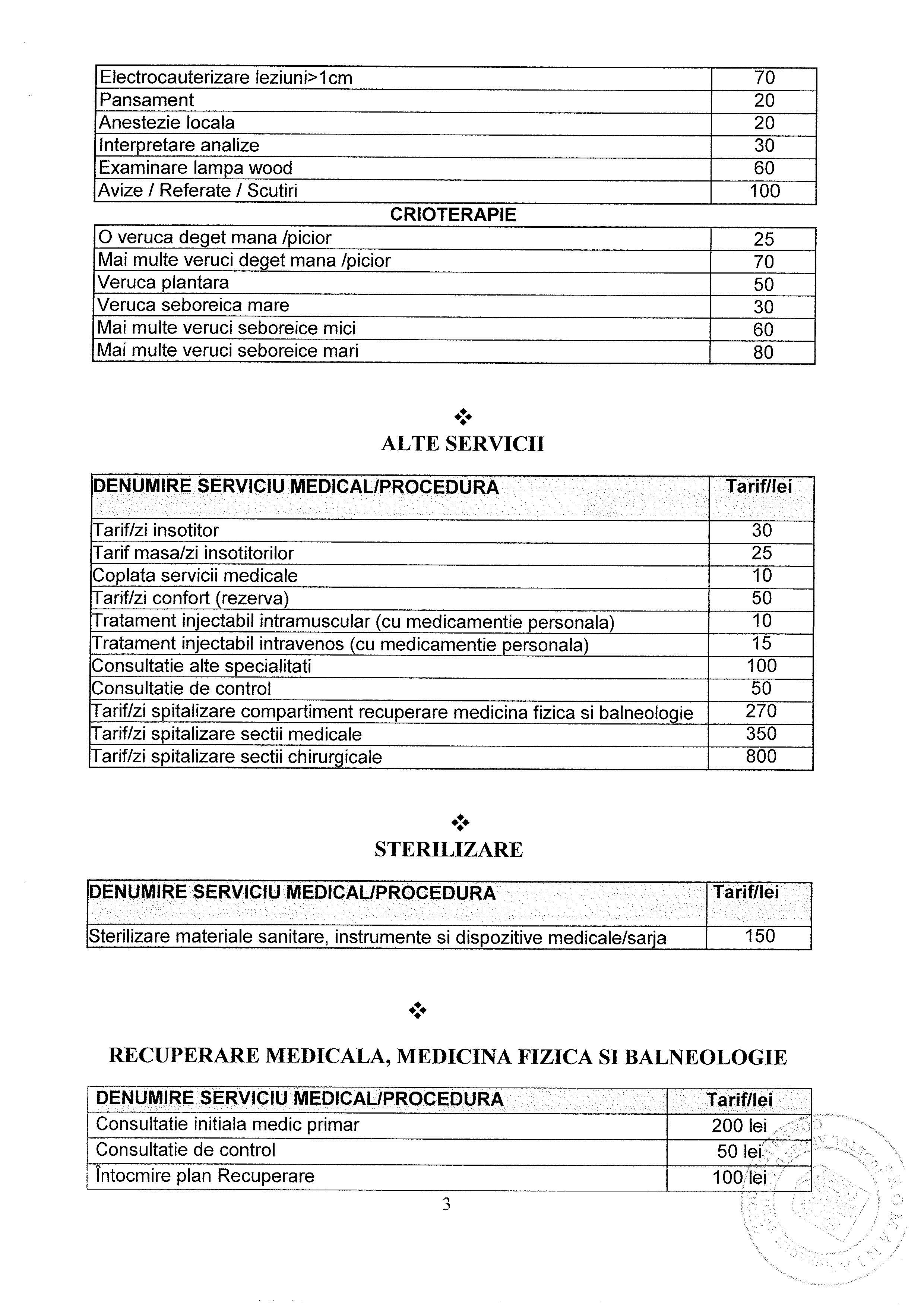 Lista Tarife Spital