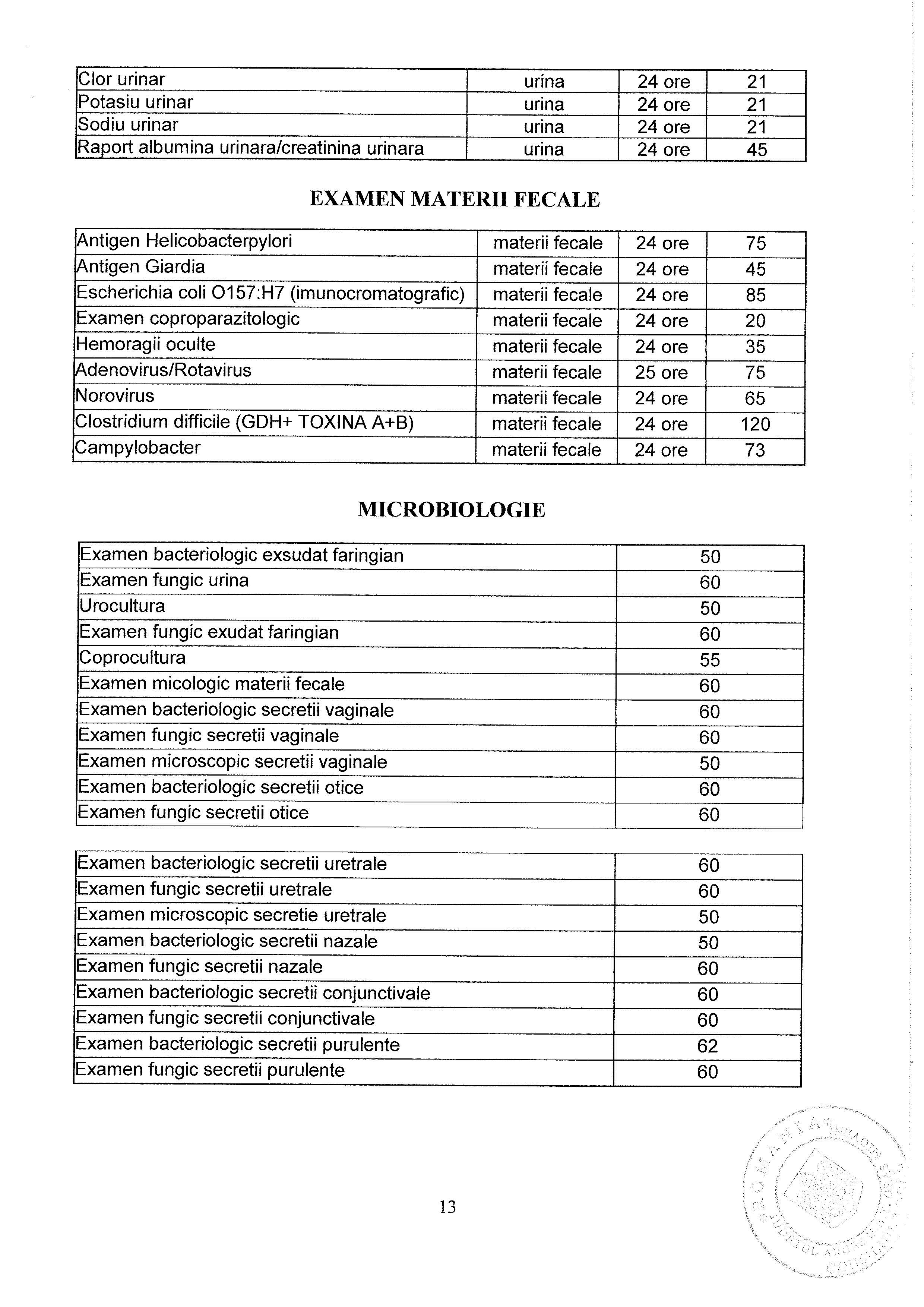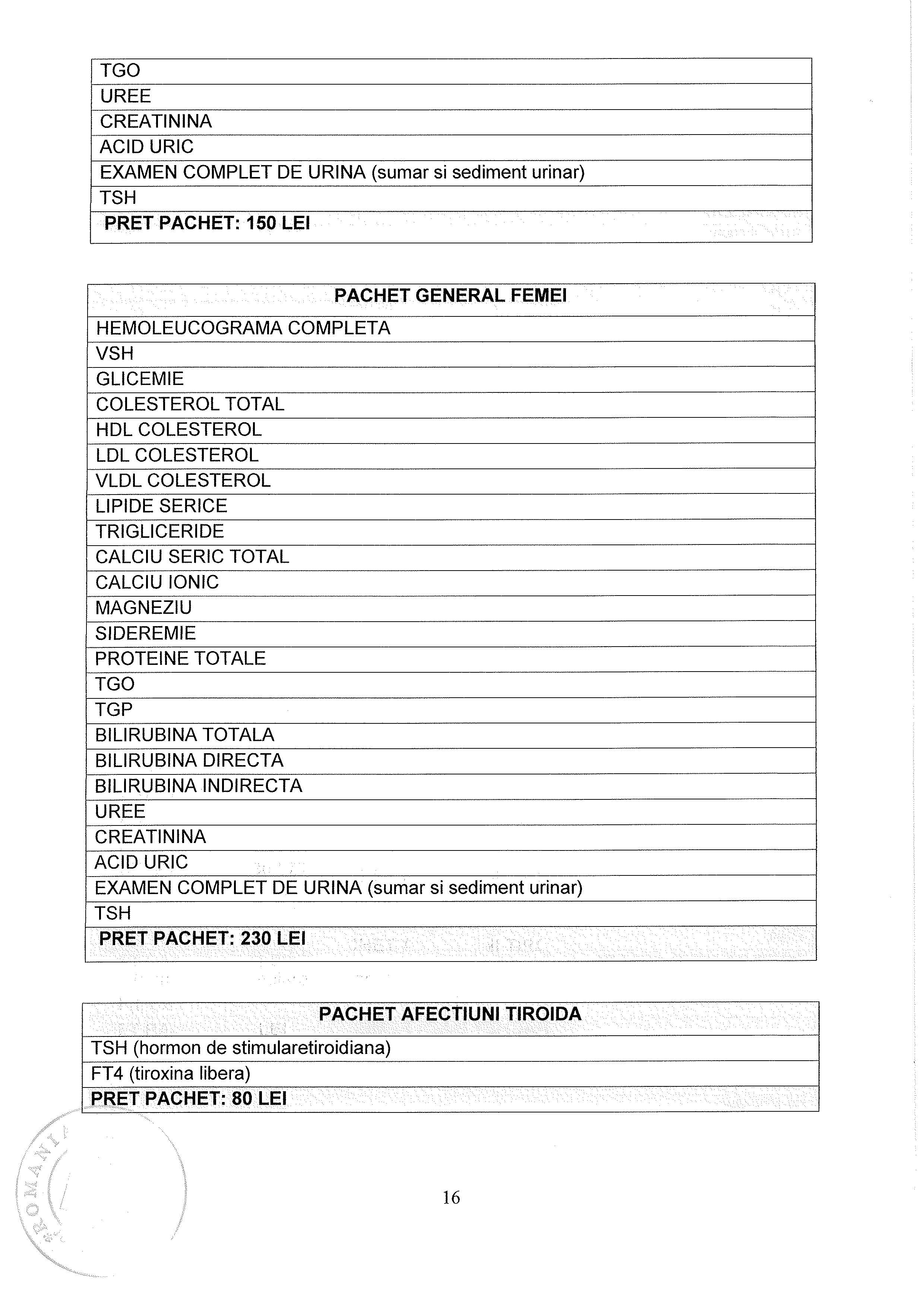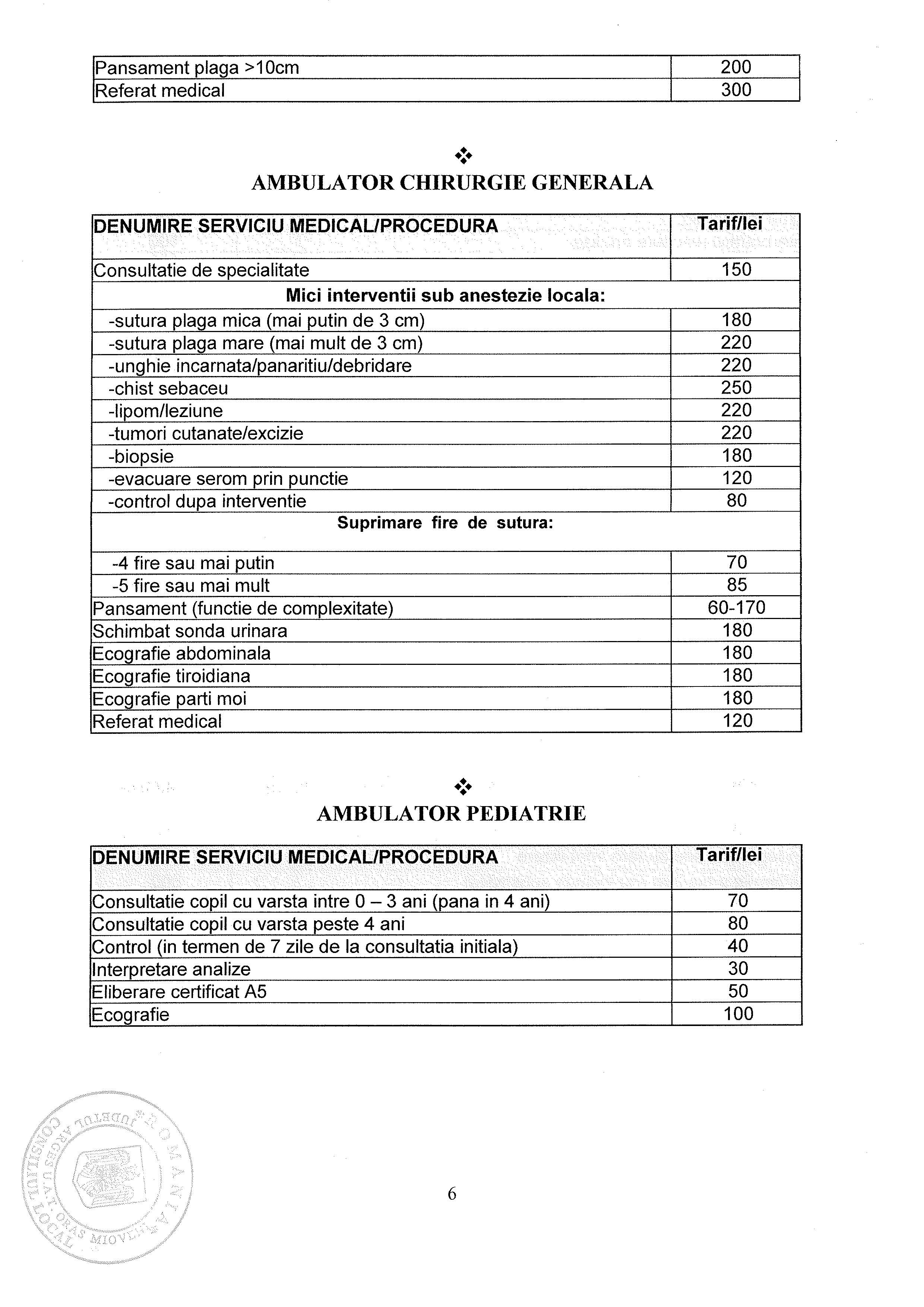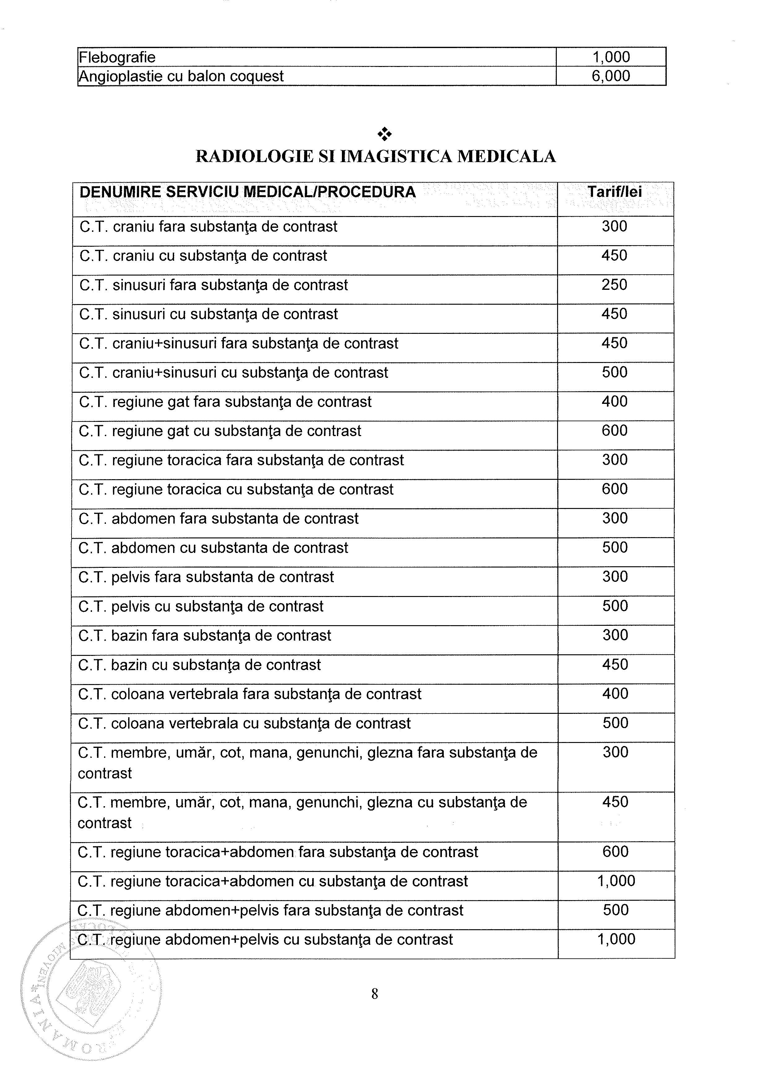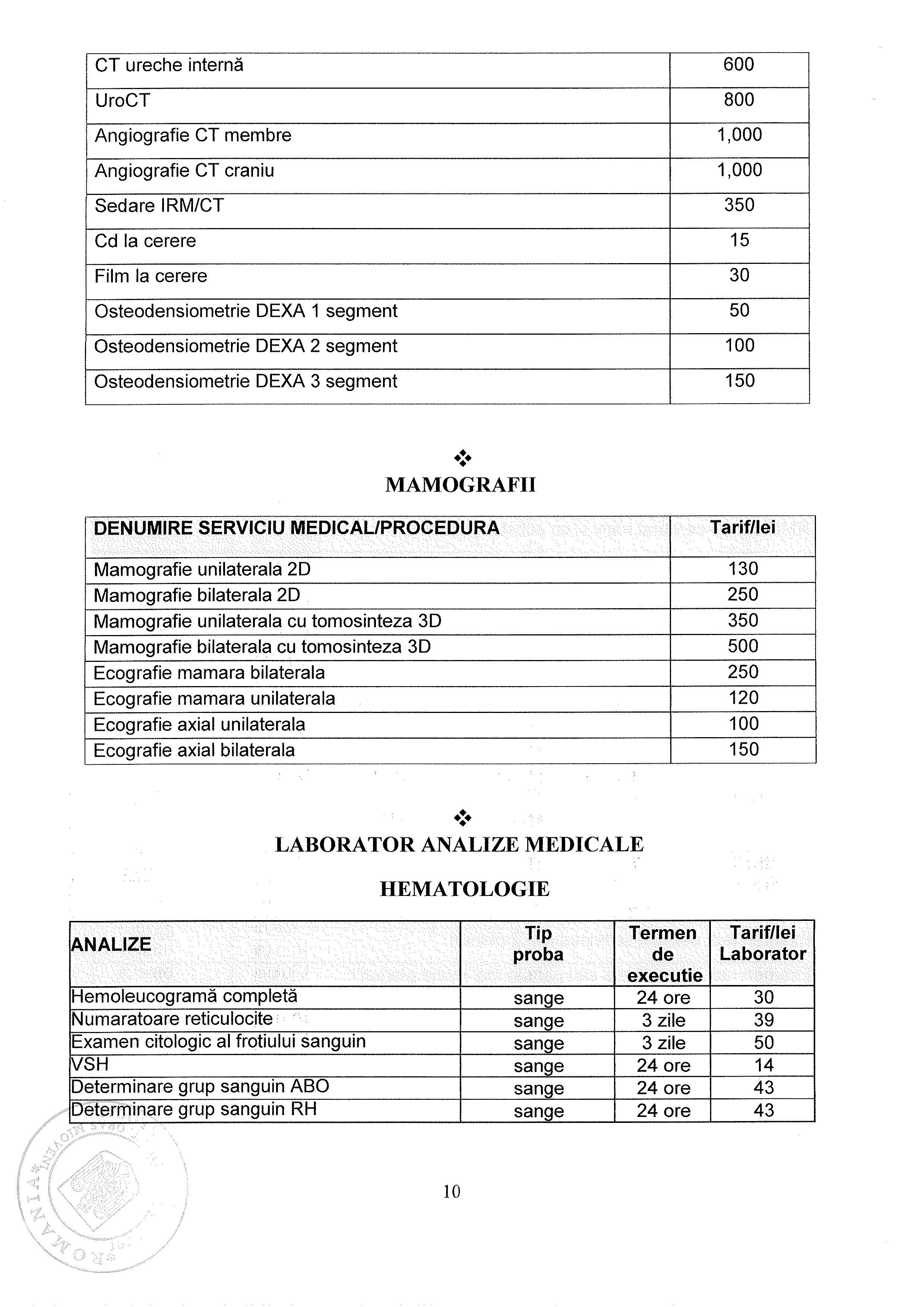 Lista Tarife Spital