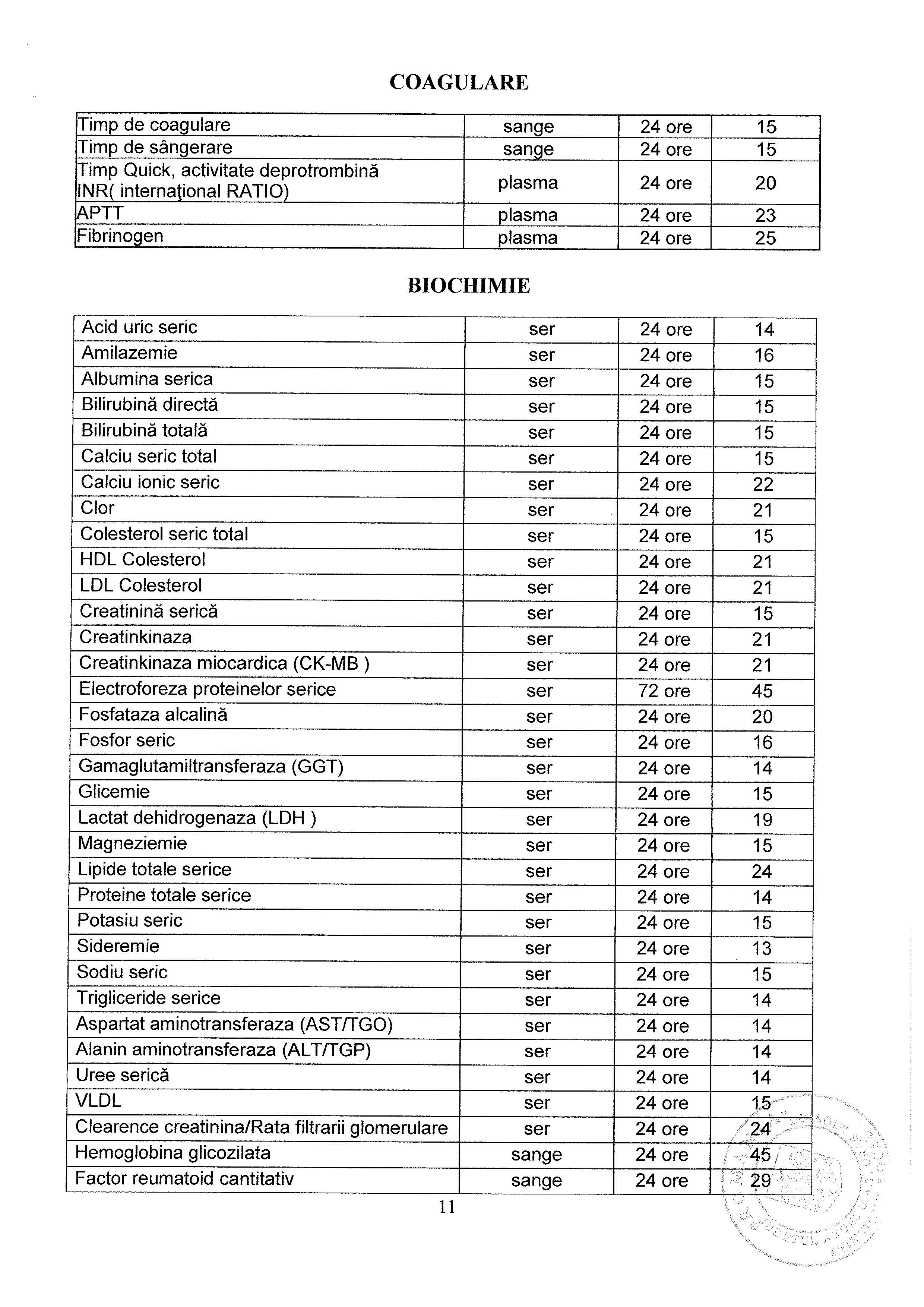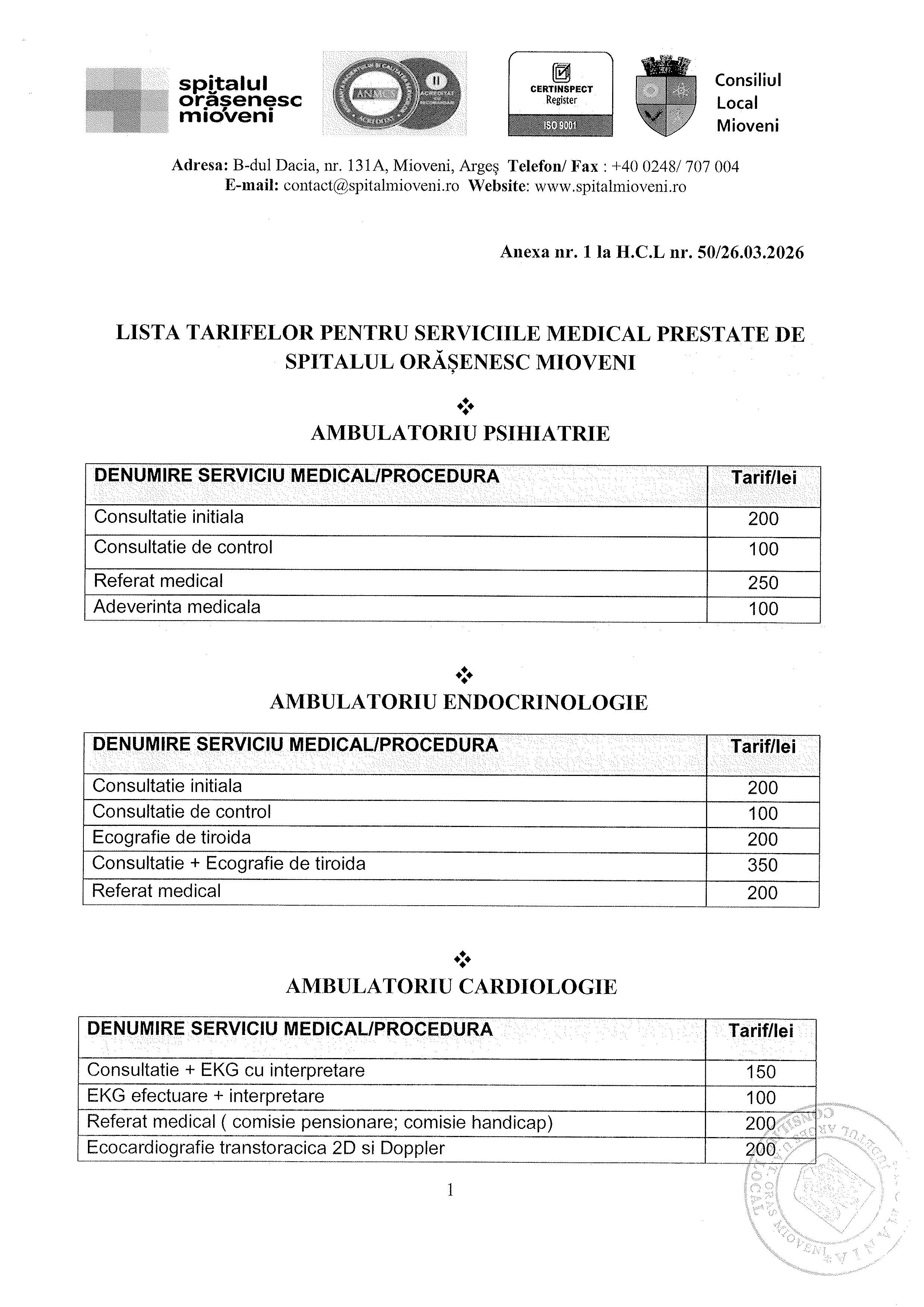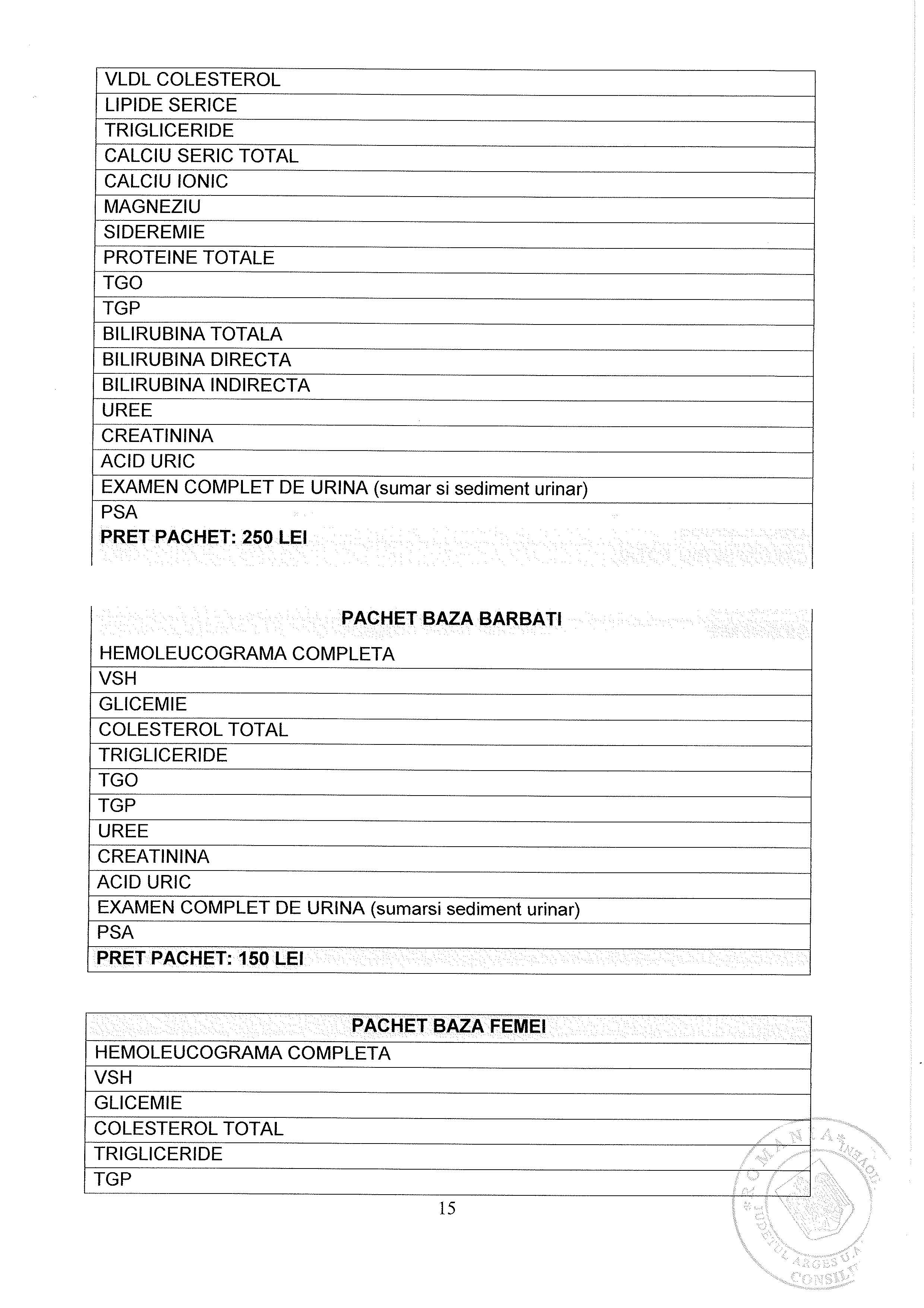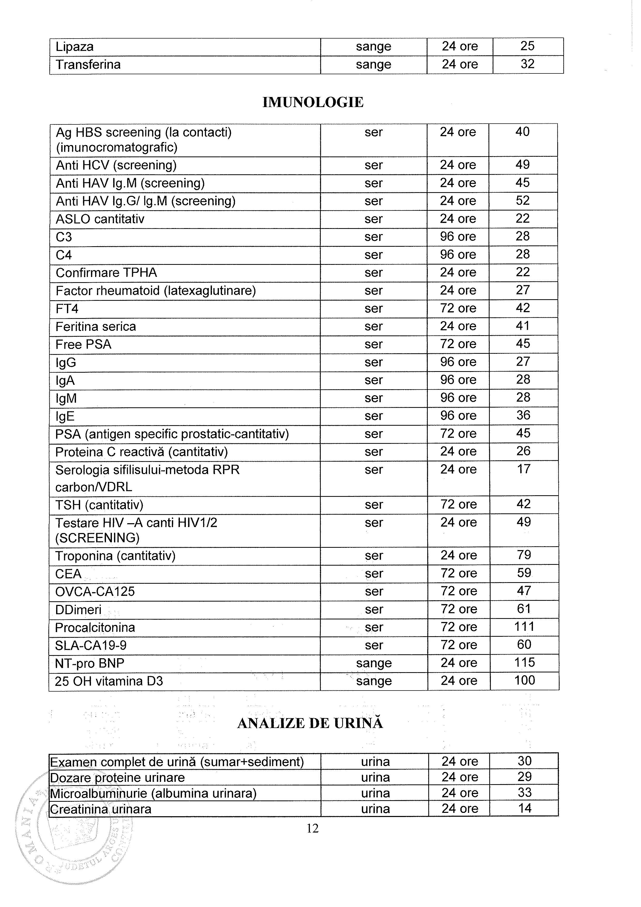 Lista Tarife Spital
